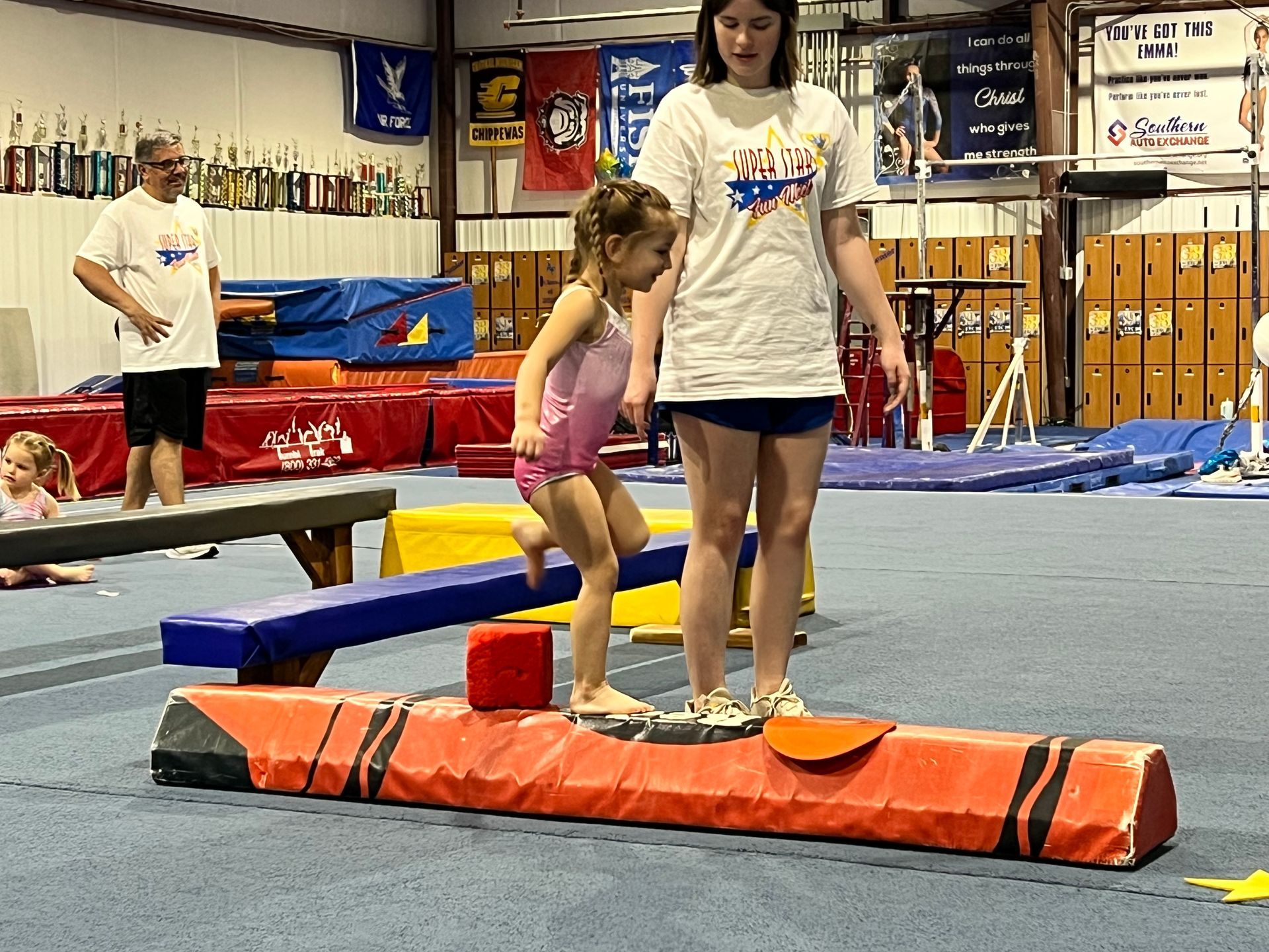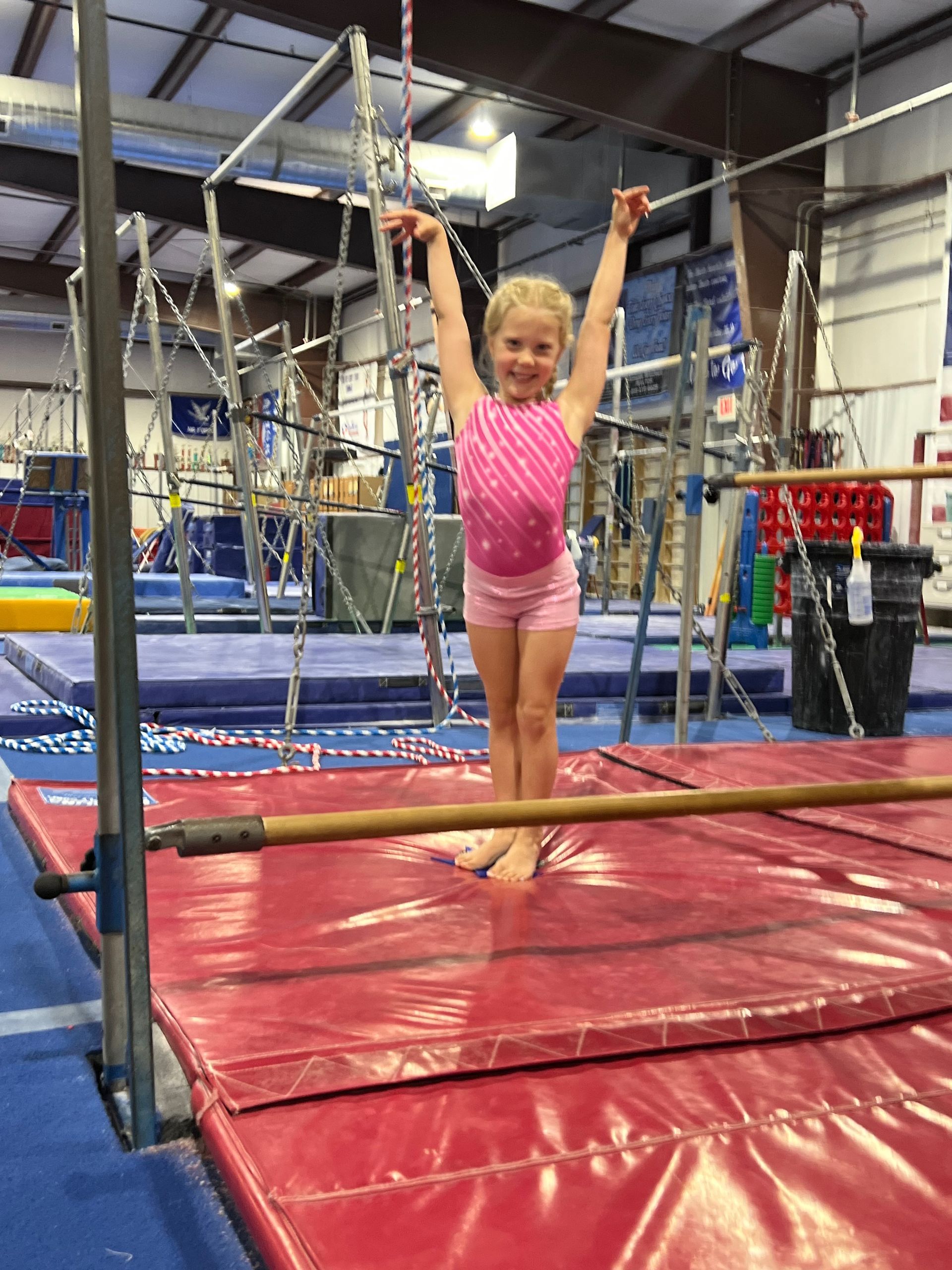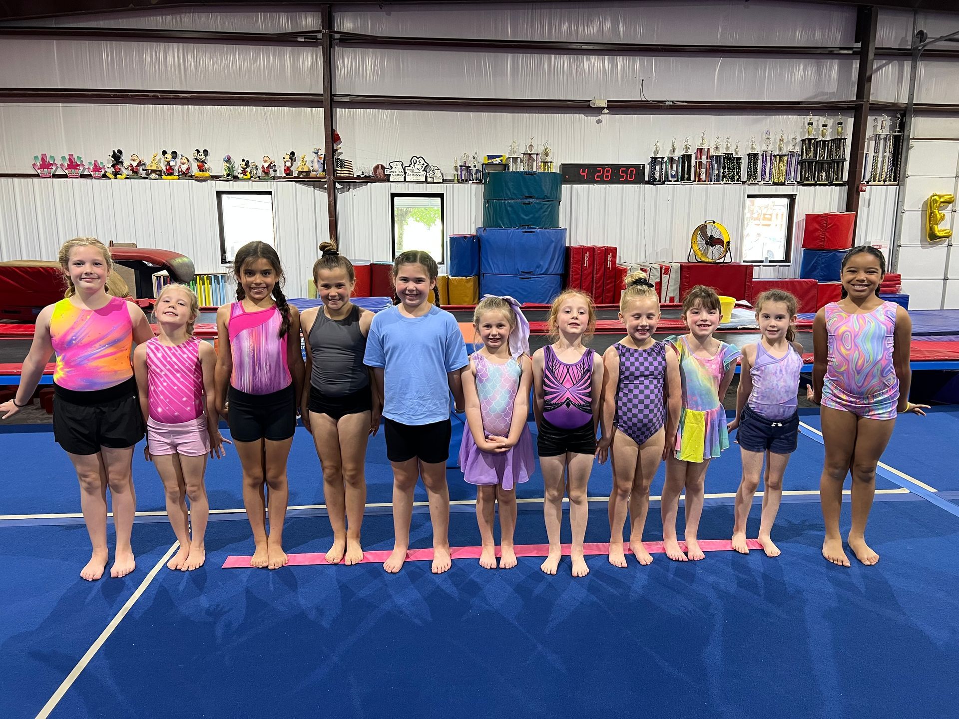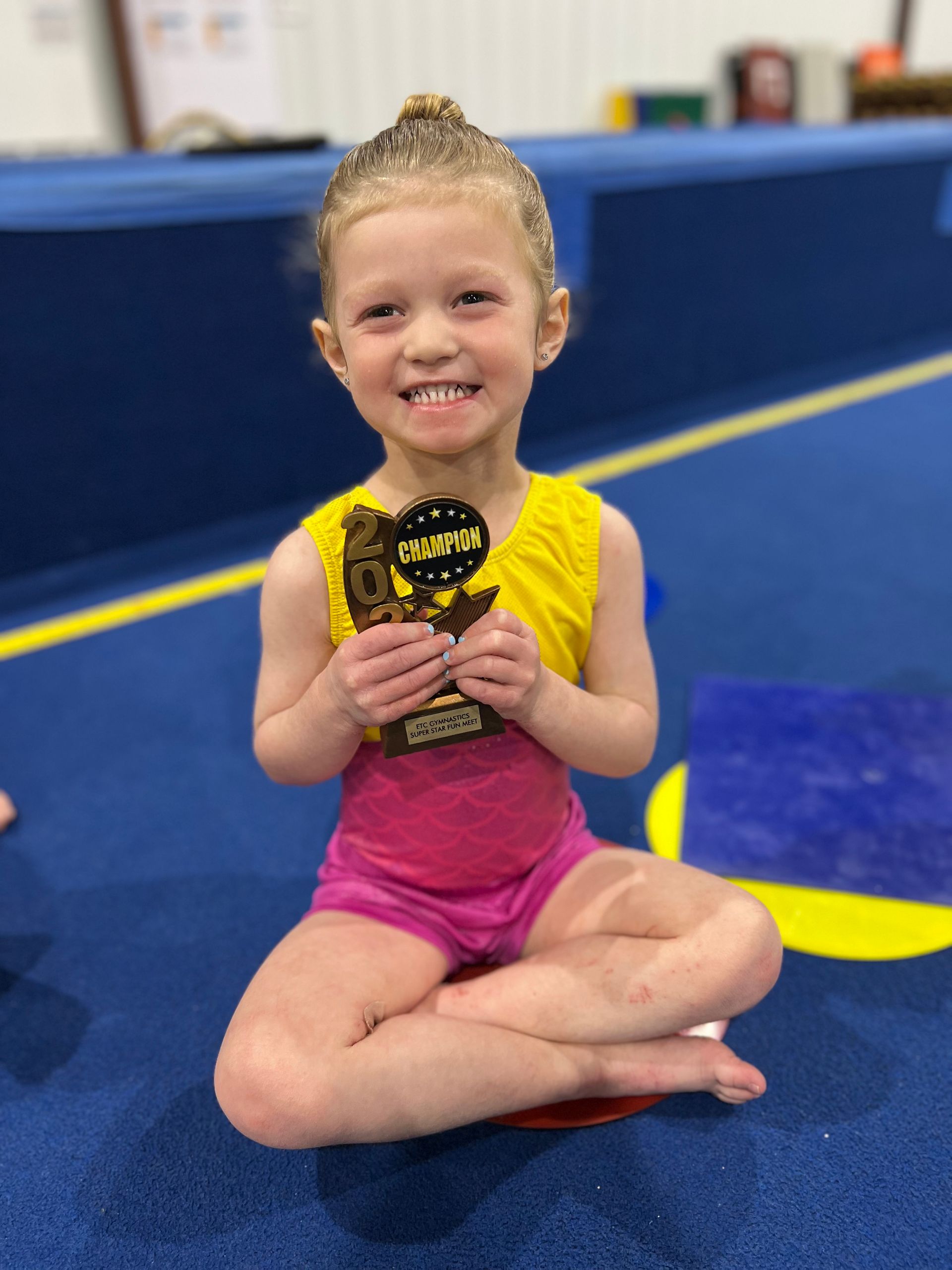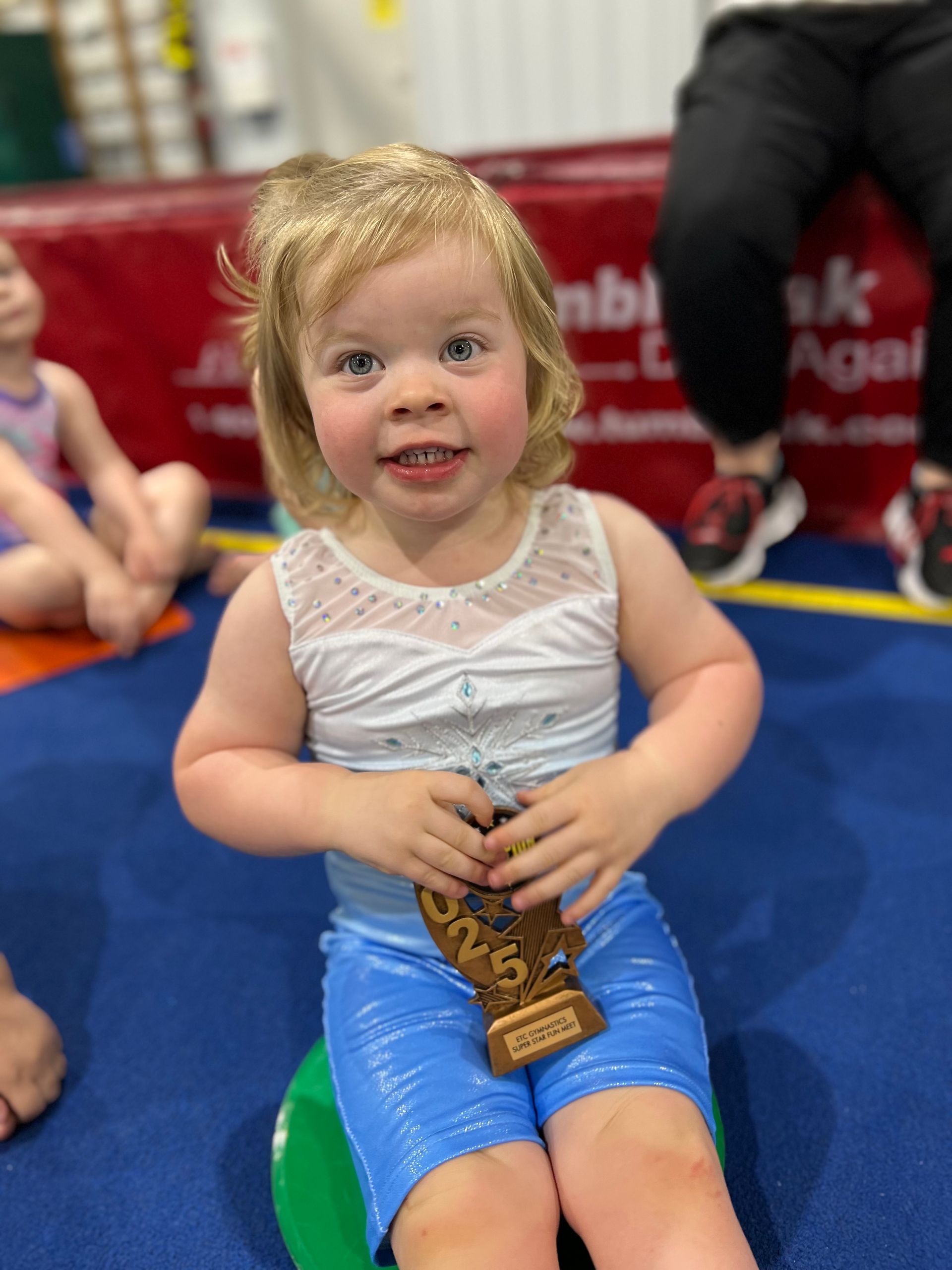 The Fun Meet is a gymnastics recital that is formatted like a traditional competition. The participants will rotate through beam, bars, and floor performing routines they learn in their regular class. They will not be judged. At the end, they receive a trophy and you will have an opportunity to take a photo of them on the podium.